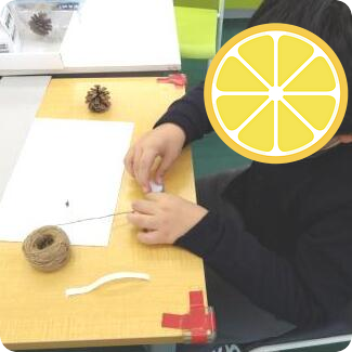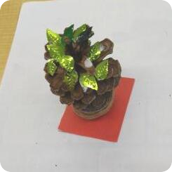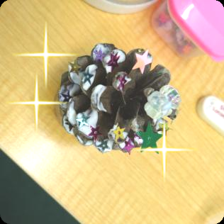 今回のきらり広場では松ぼっくりで小さなツリーを作りました。
