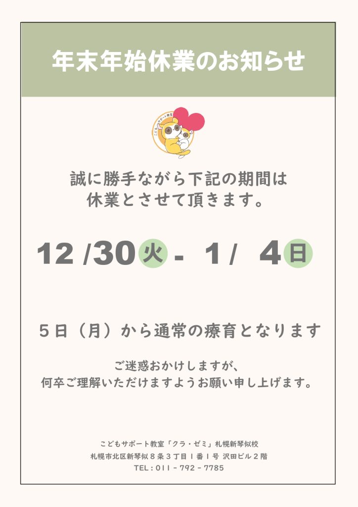 明日12/30(火)より1/4(日)まで年末休業となります。