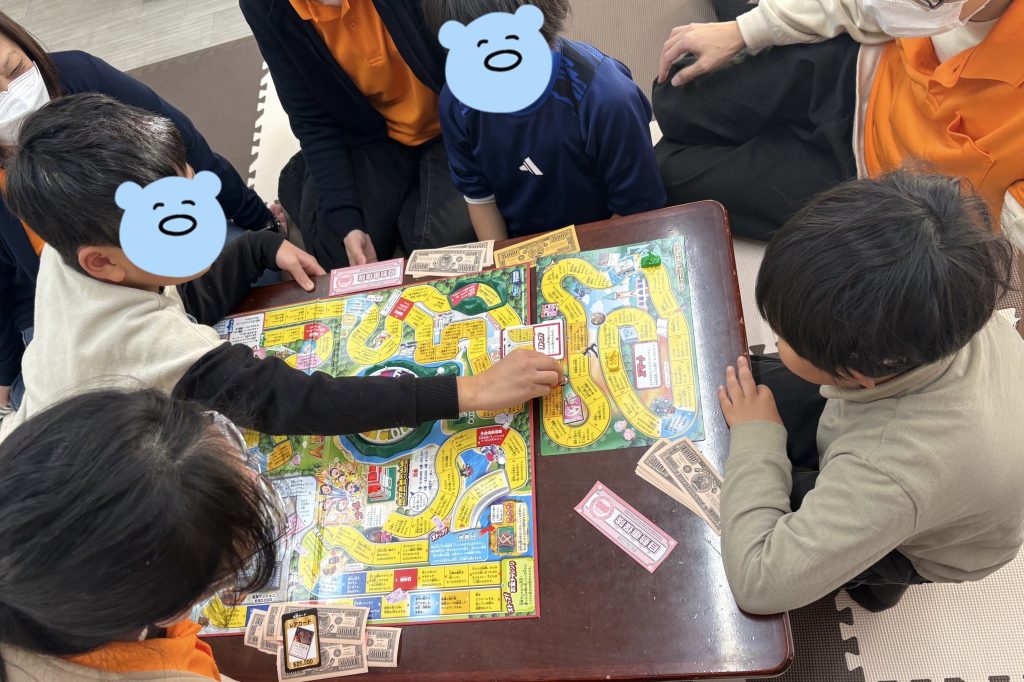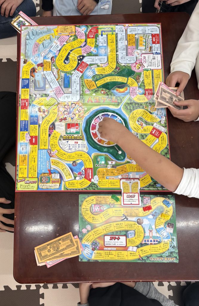 「ルーレットを回し、数を数えてコマを進め、コマの説明を読んでお金のやり取り。」と言った一連の流れをみんな頑張って行いました。