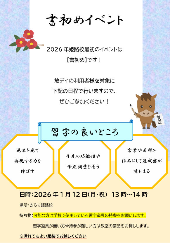 2026年姫路校最初のイベントは書初めです!
