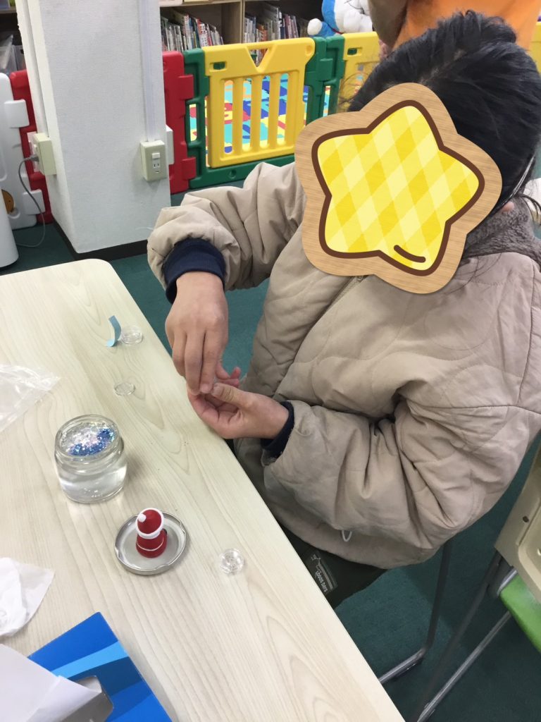 小学生以上のお子様は洗濯のりを使ってスノードーム作りに挑戦です!