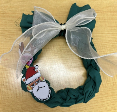 次は緑の布で作るリースです
