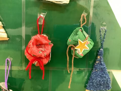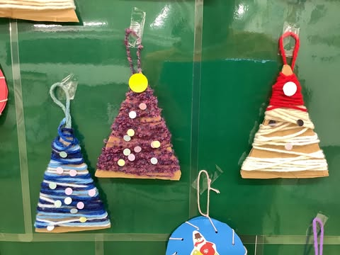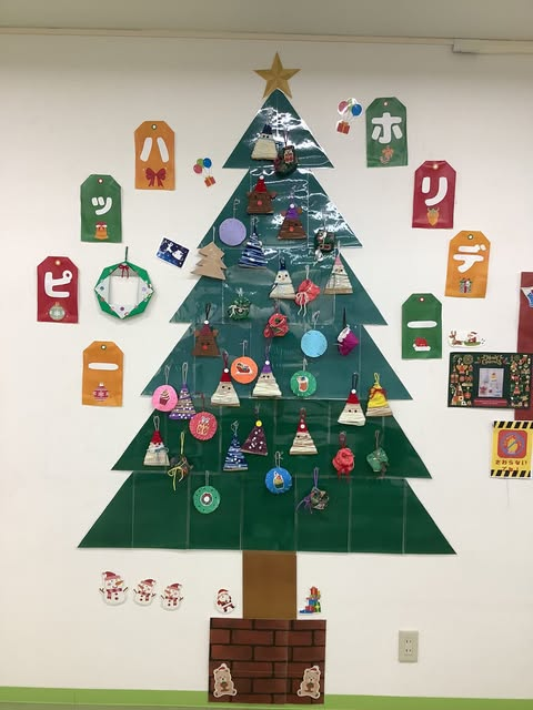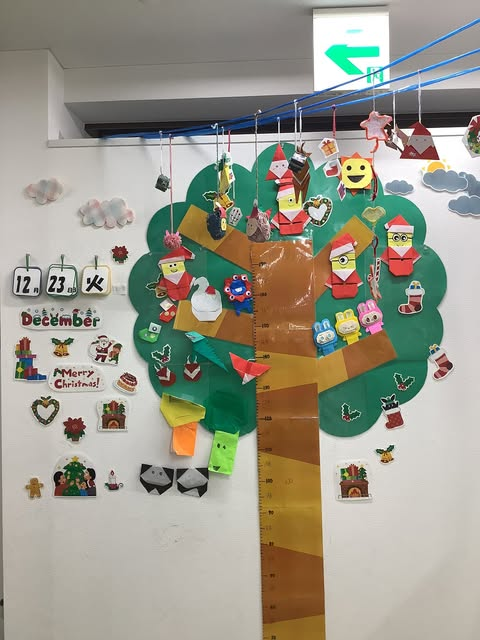 完成した工作はみんなで壁面の大きなツリーにかざりました🎄