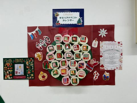 そして今月は、クリスマス気分を少しでも盛り上げるため、アドベントカレンダーを設置しました✨
