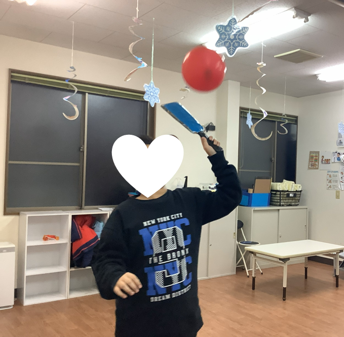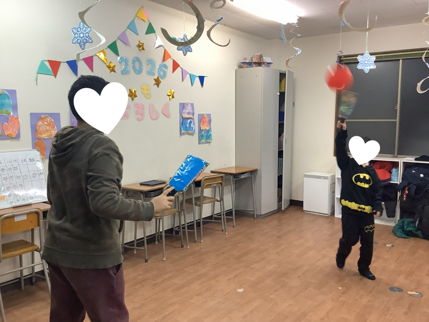 No serviço de apoio após a escola, brincamos de bater o balão como no jogo de hanetsuki. 🎈