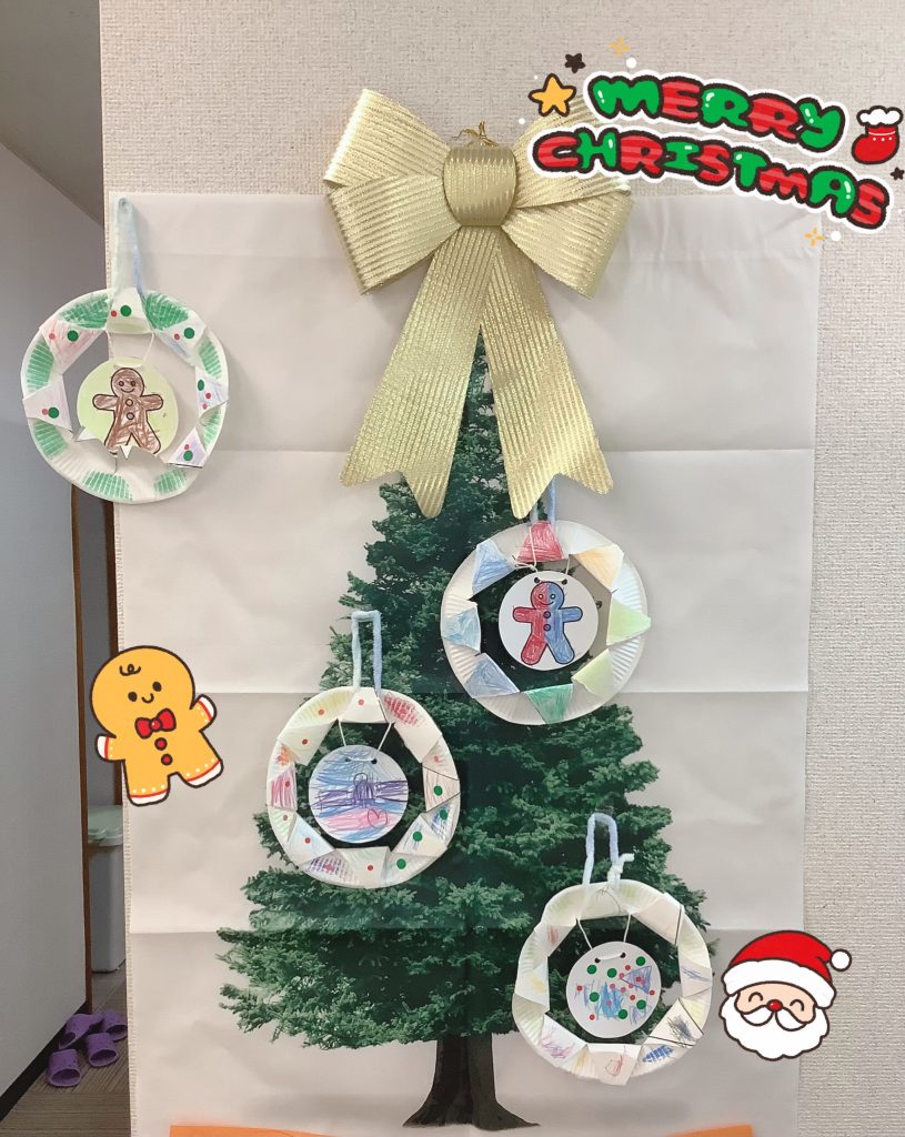 南栄校ではリースやクリスマスツリーの制作を行い、壁面に飾っています🎄