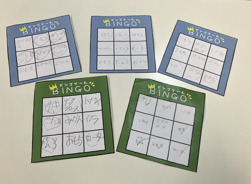 そして、お待ちかねのビンゴゲーム🎉番号が呼ばれるたびにカードをじっと見つめ、「あった!」「次でそろうかも!」とドキドキの時間😊ビンゴが出た瞬間には「やったー!!」と歓声が上がり、教室中が一気に盛り上がりました。