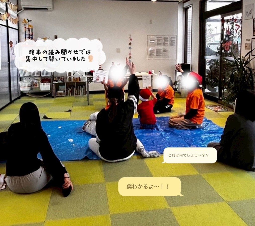 初めにクリスマスに関する絵本の読み聞かせを行いました📖🎄