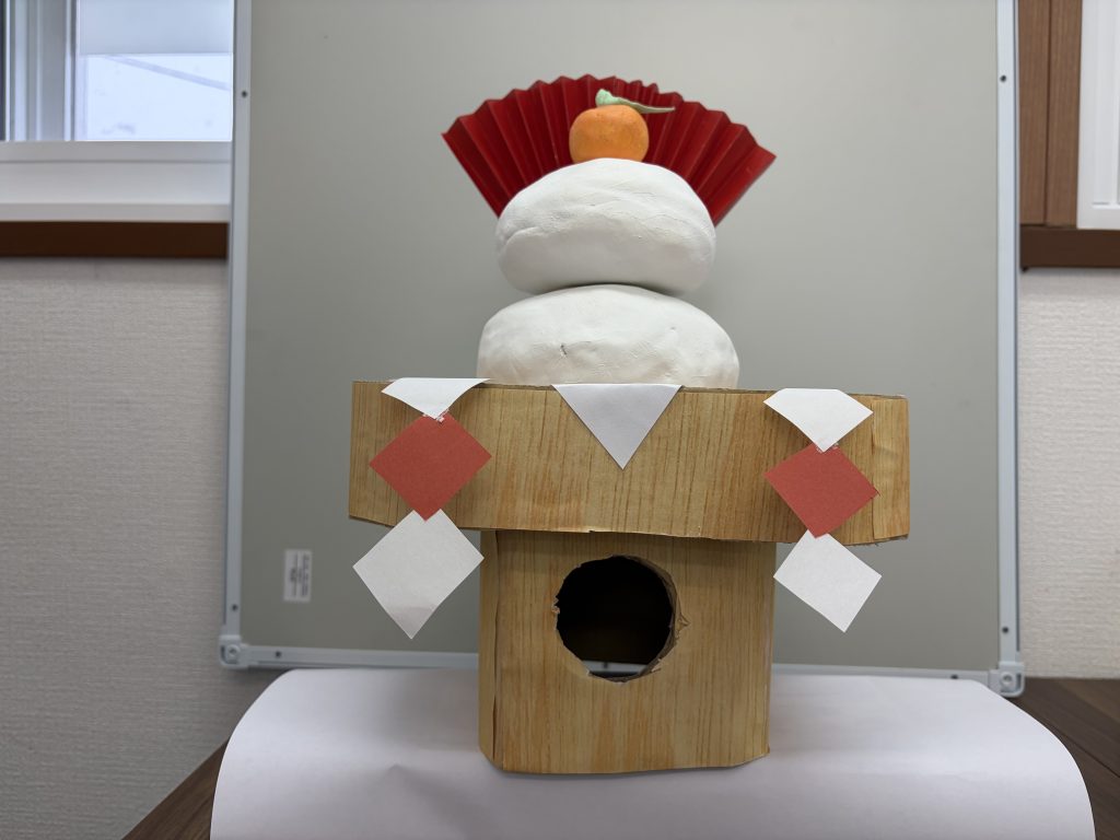 小学5年生の利用者が、利用時間の一部を作成時間に当て、約2週間かけて作った、力作の鏡餅です!!!