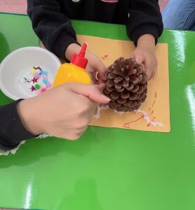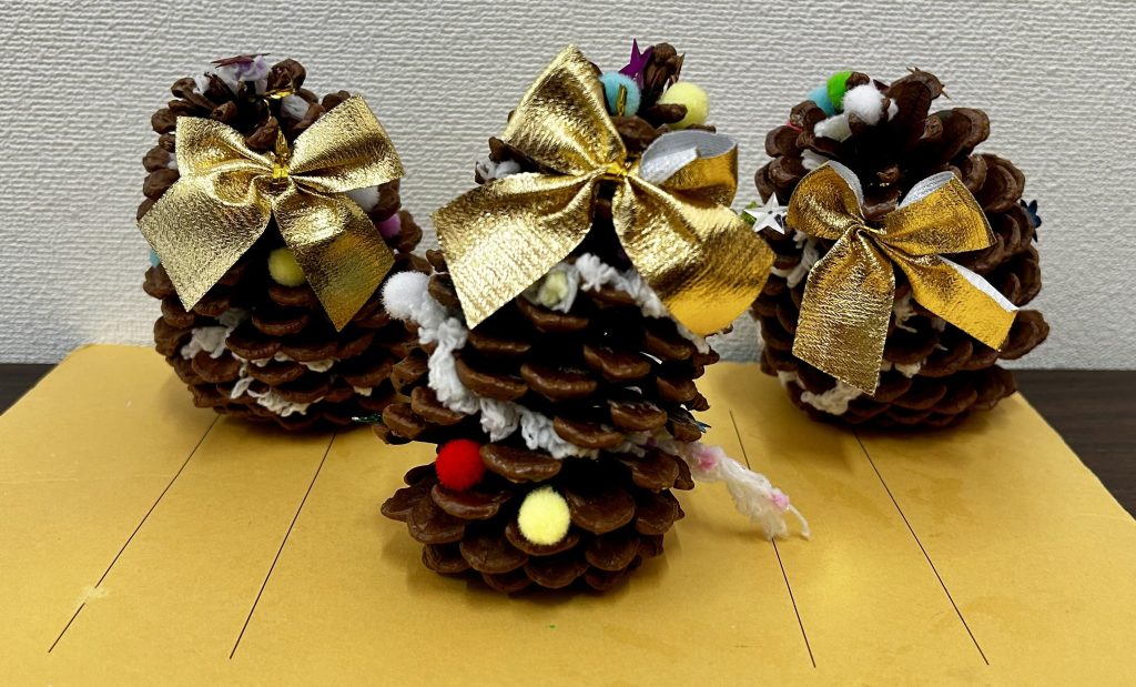 今月は「クリスマス」をテーマに年中児さんはまつぼっくりツリーを、