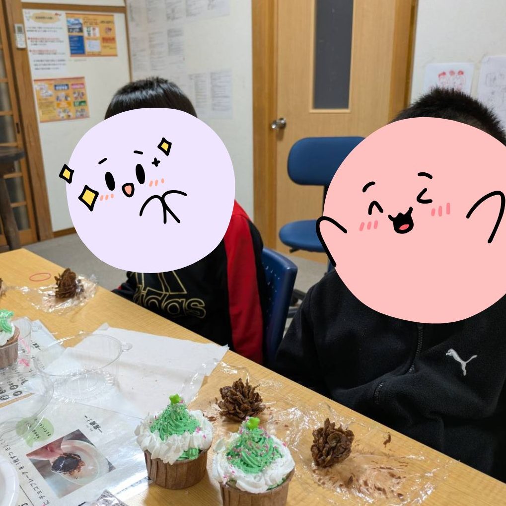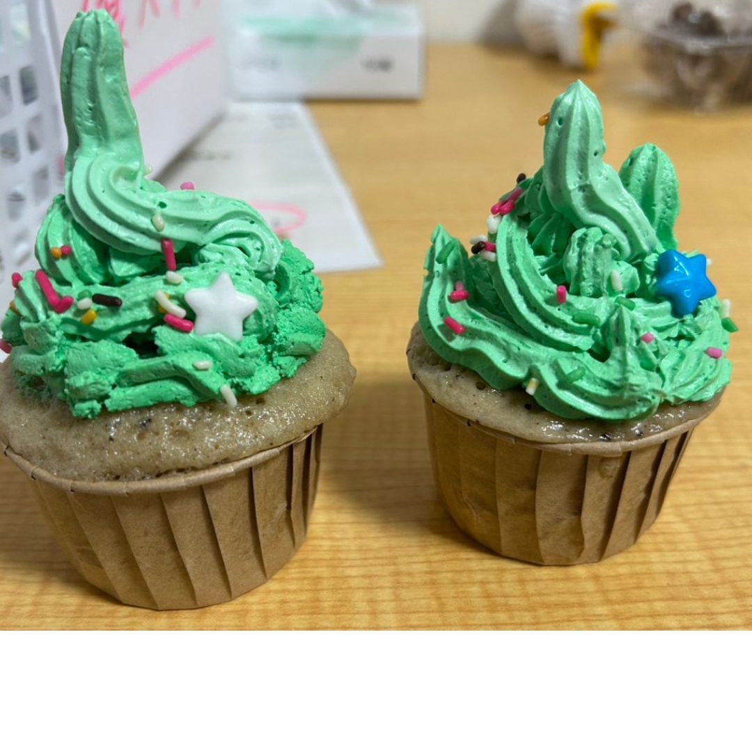 なかなか見ない緑色の生クリームに目を輝かせ、きれいなクリスマスツリーになるよう、集中してらせん状に絞る様子がとても印象的でした✨