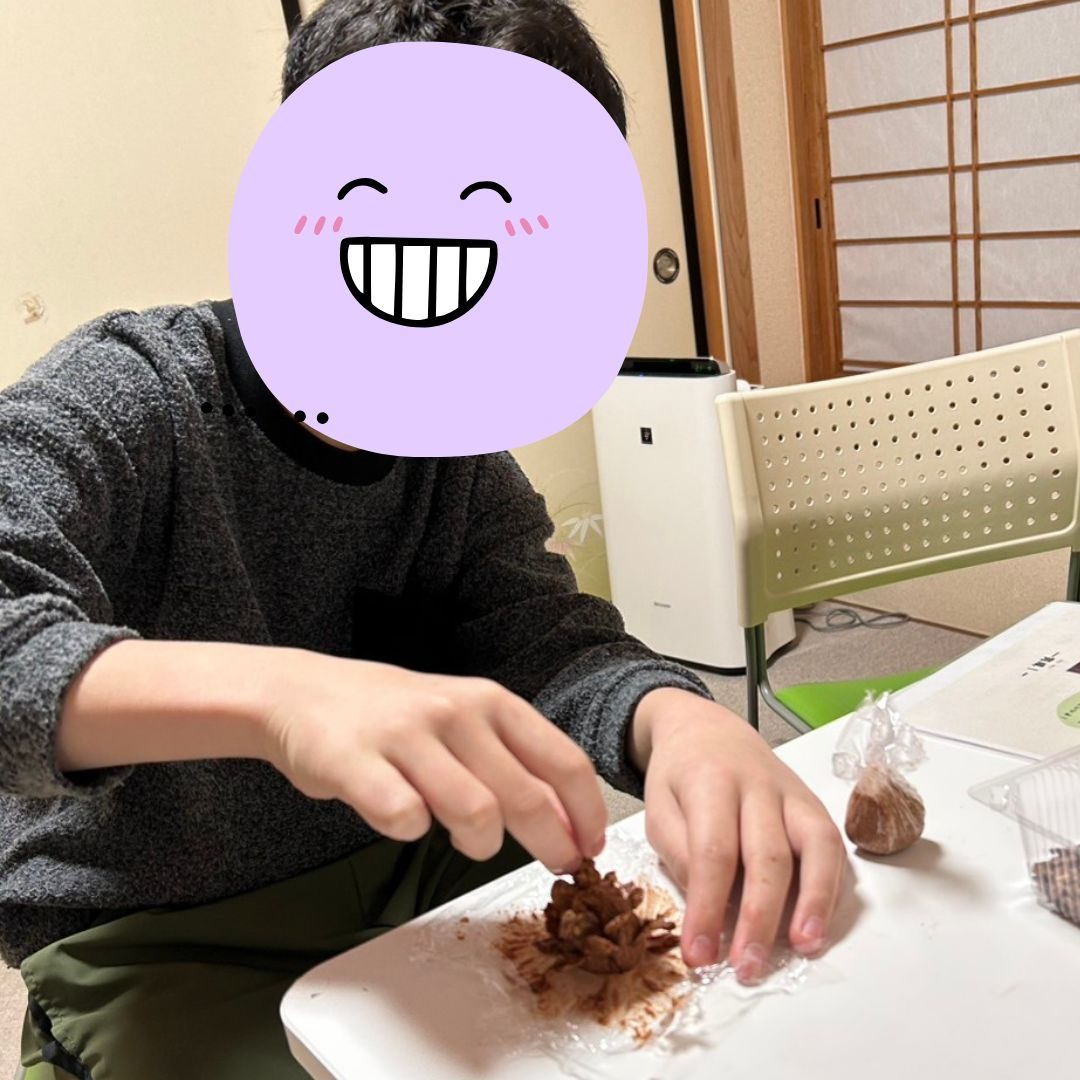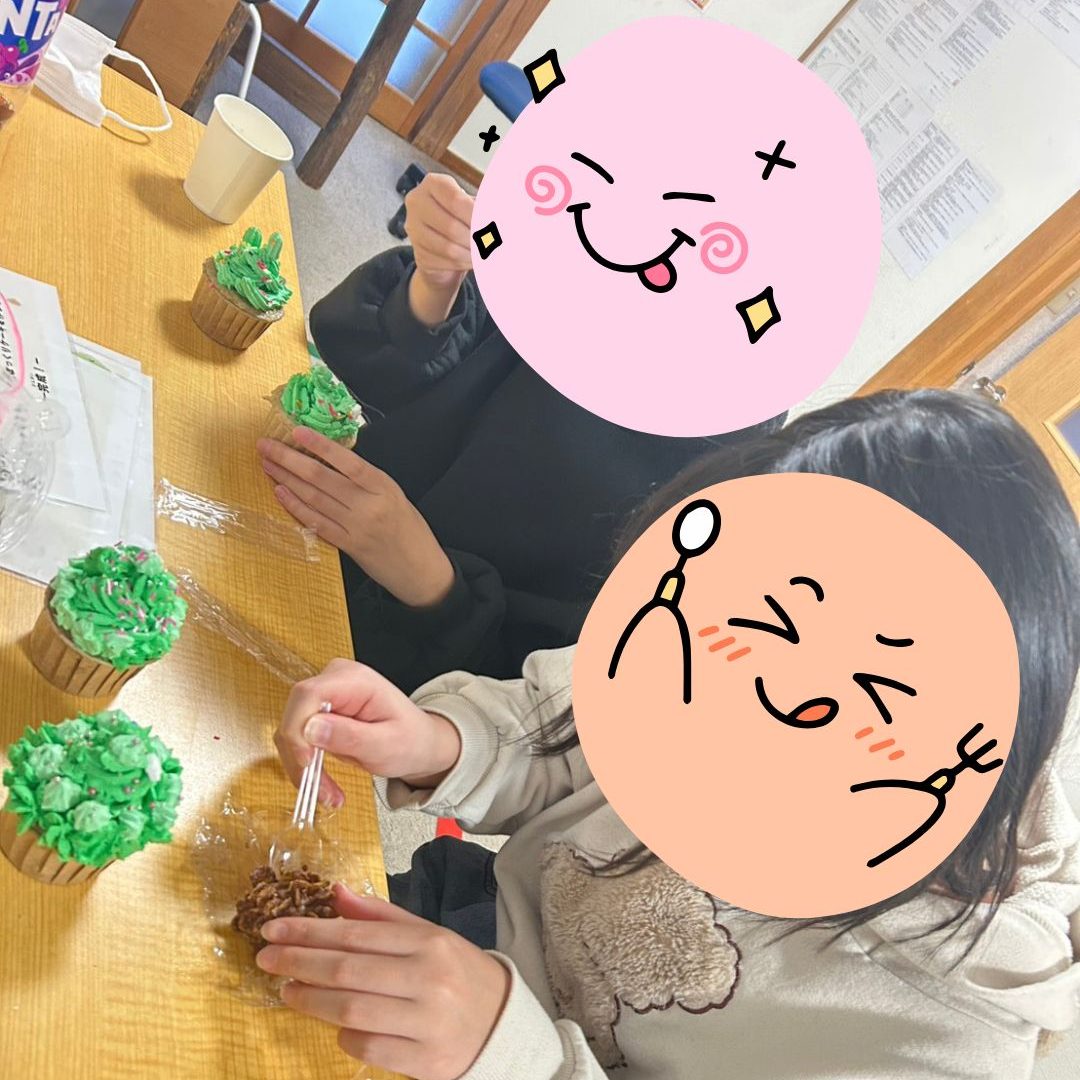 松ぼっくりケーキでは、チョコフレークの位置や差し込み具合を工夫しながら、本物のような形に上手に仕上げることができていました🌲