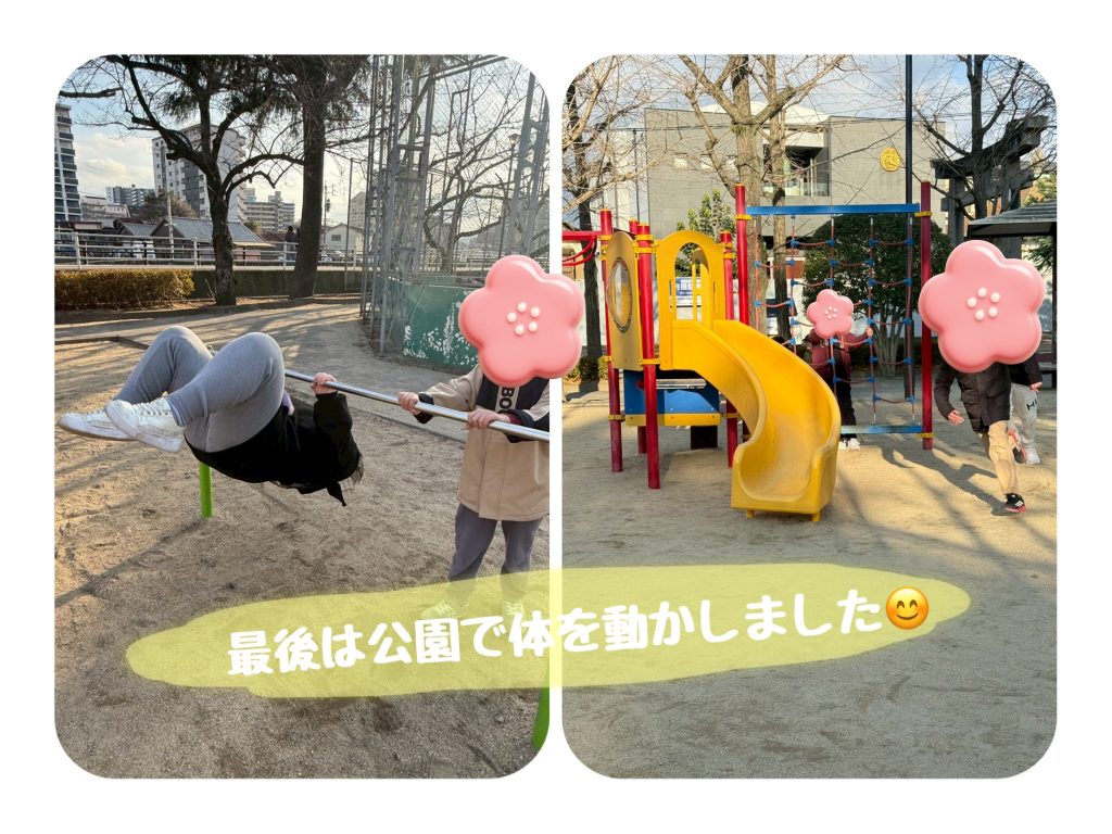 寒さに負けず、鬼ごっこをしたり、遊具で遊んだりと、
