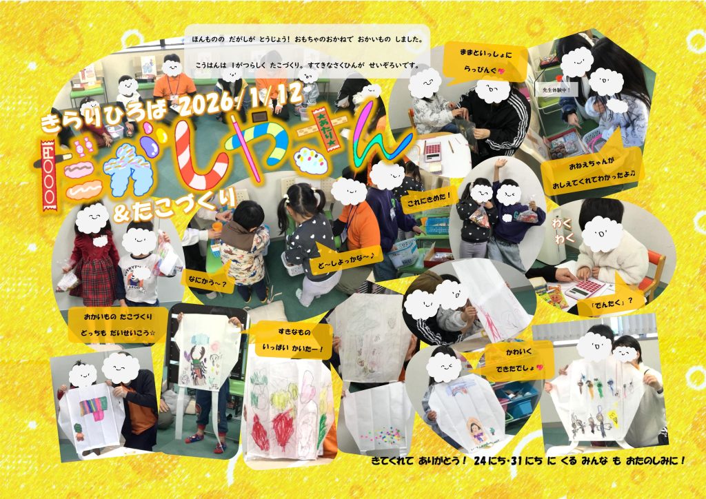 後半は1月らしく、凧に絵を描いて楽しみました。