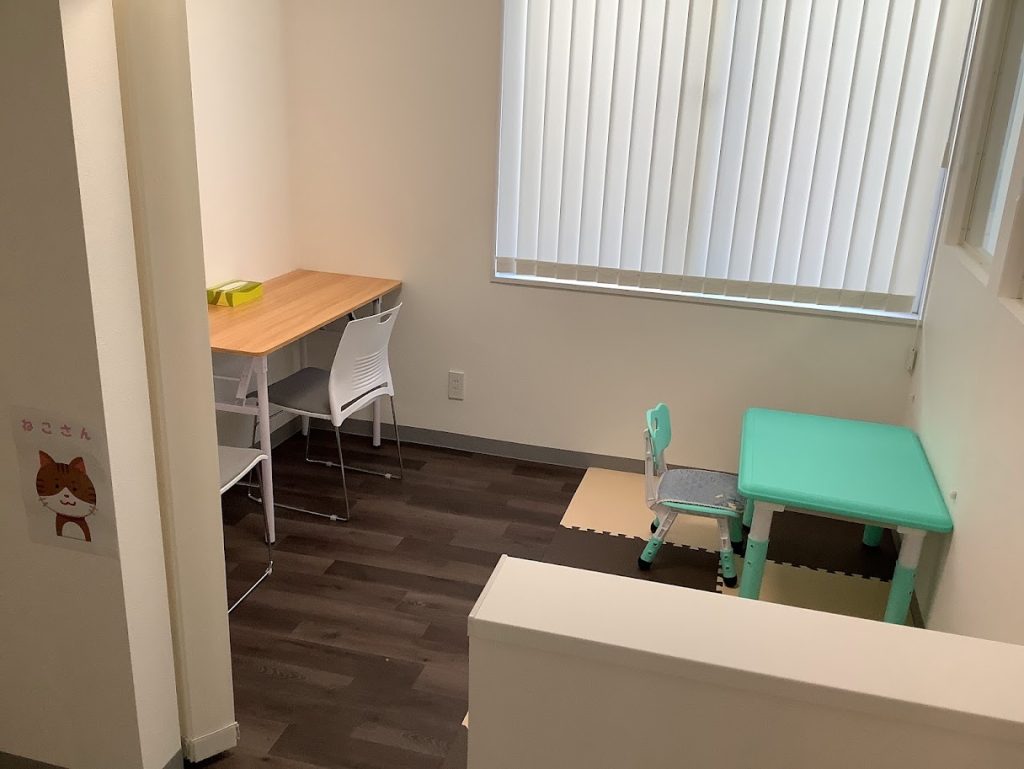 ここは、主に保護者様や関係機関の皆様とお話をする場所となっています。