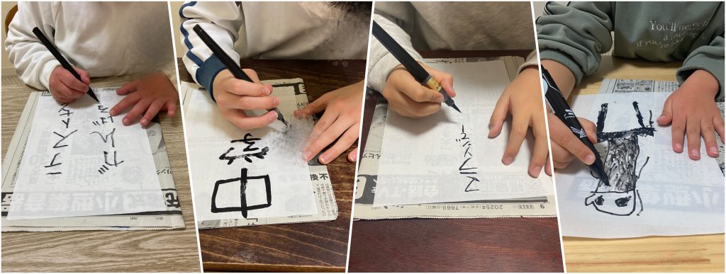 筆ペンを使ってミニ書初めを行いました!