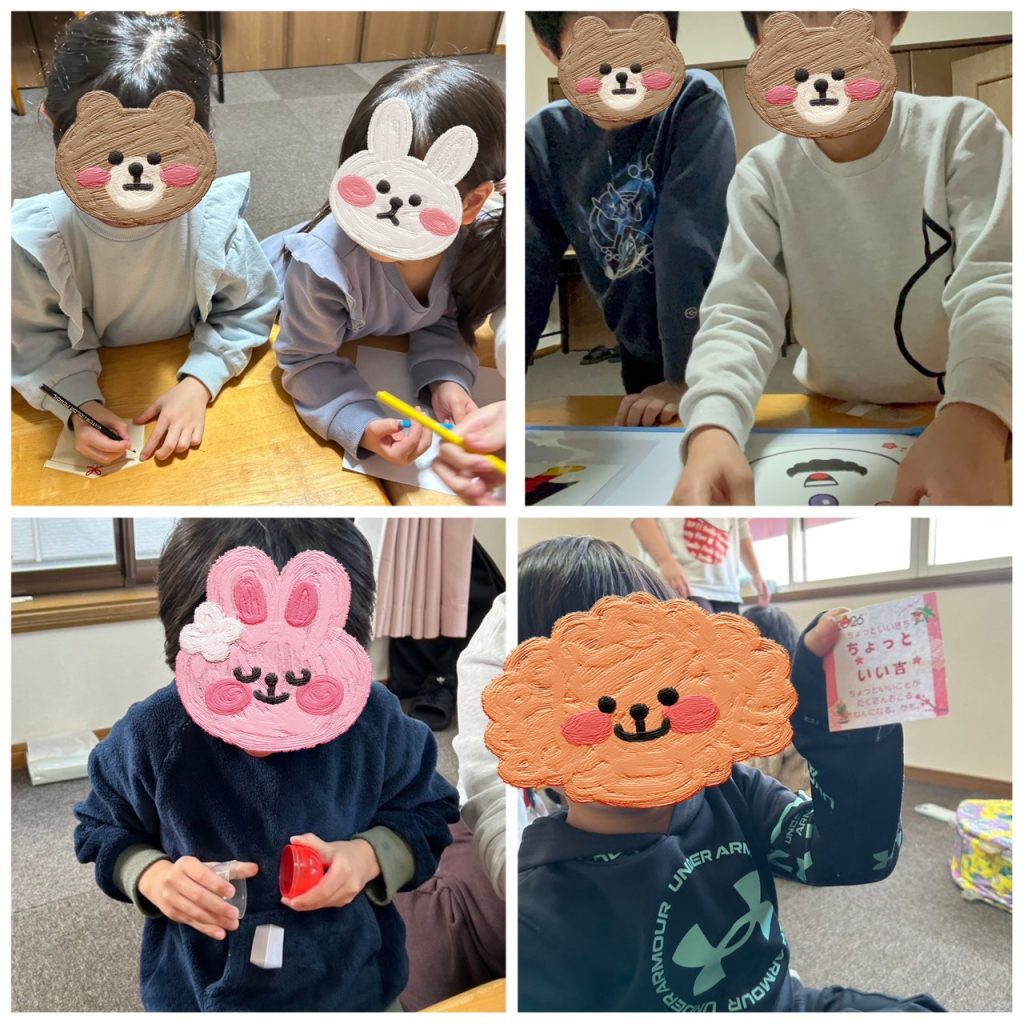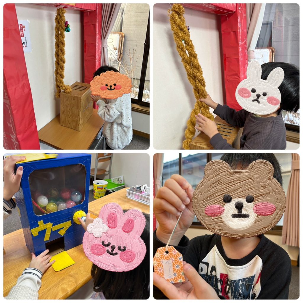 おみくじは北上上野町校特製ガチャポン✨他にも福笑いをしたり、なぞ解きで頭を使ったりといろいろな遊びを楽しみました!