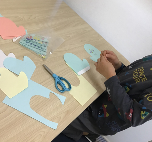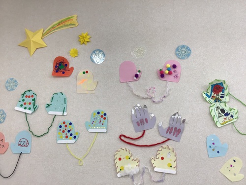 完成した手袋はカラフル個性豊かで教室が温かい雰囲気に💕