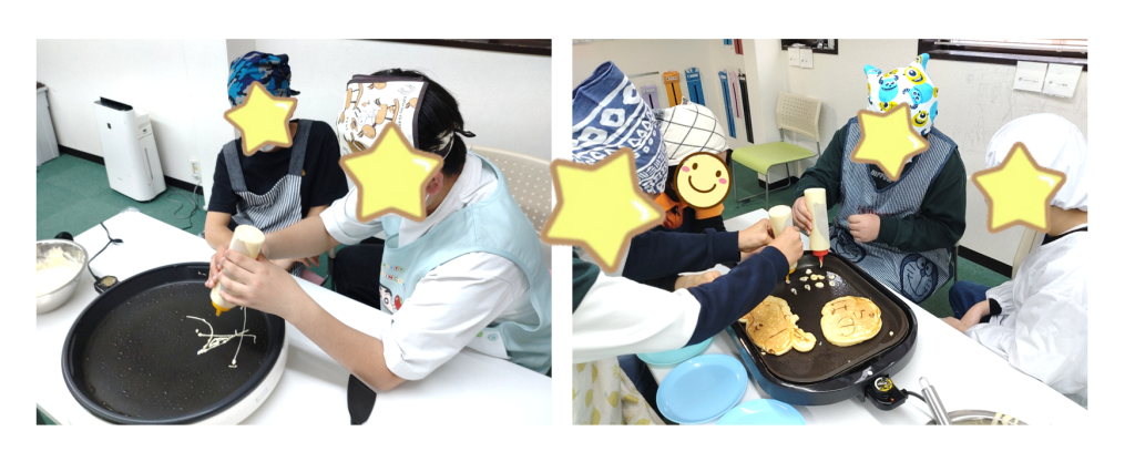 『ホットケーキ作り』では、粉を量ったり、卵を割ったりとやることを分担しながら生地を作っていきます☺