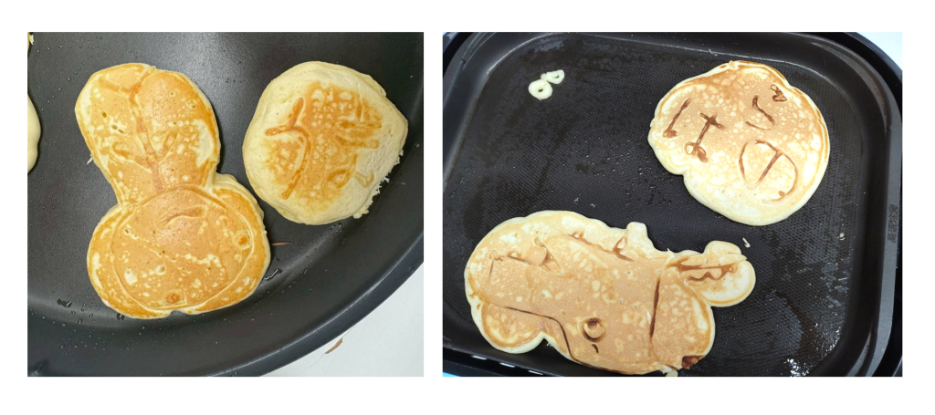 生地ができたら今回初挑戦……生地の一部をボトルに入れて、ホットプレートに絵を描いていきます!
