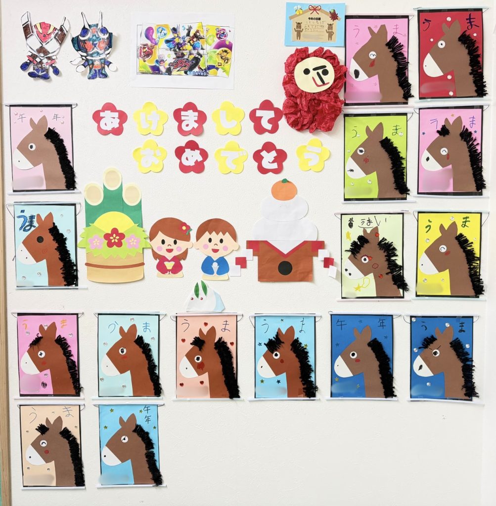 今年は午年🐎✨ 個性あふれるたくさんのウマが、きらりの壁を彩ってくれています😊