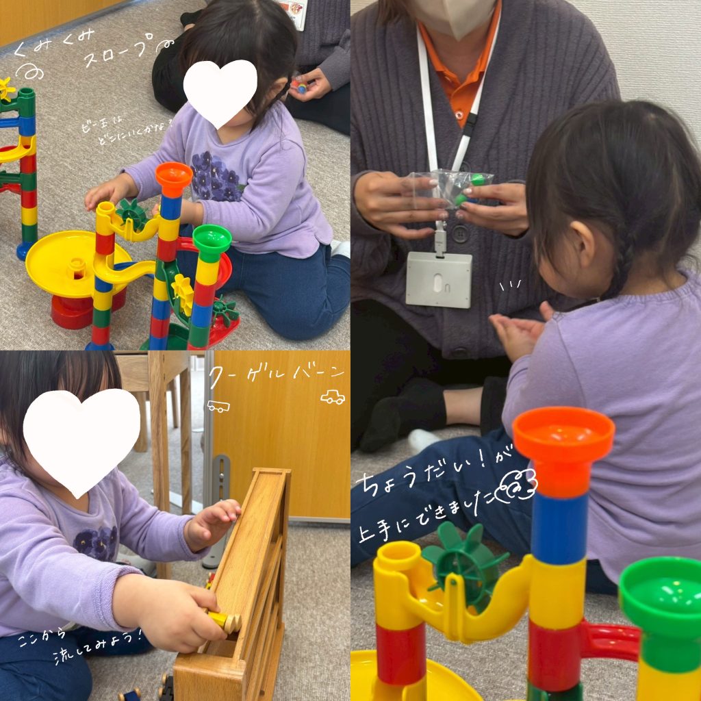 ブロック、おままごと、クーゲルバーン、くみくみスロープなどができるコーナーも作りました✌
