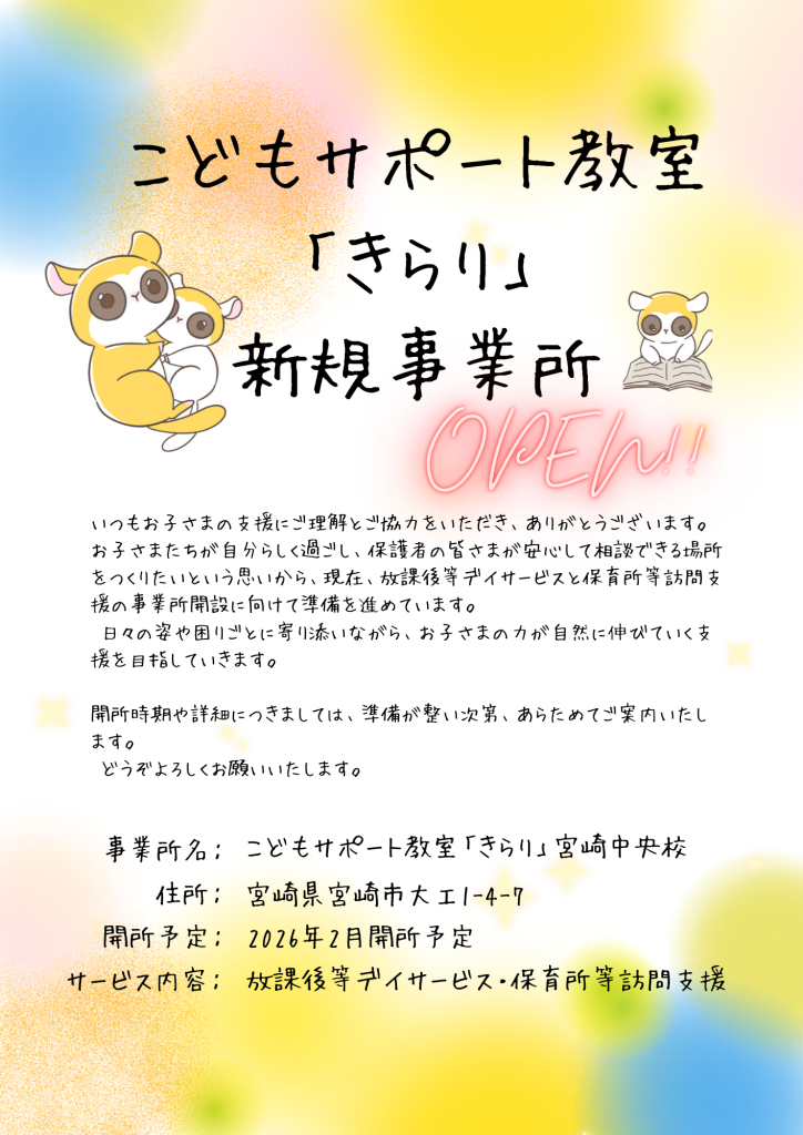 また、別件になりますが、このたび、2店舗目となる事業所が2月3日に新しく開所致します✨