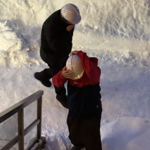 雪が積もっているため、階段はとても滑ります。気を付けながら降りていきました🏃