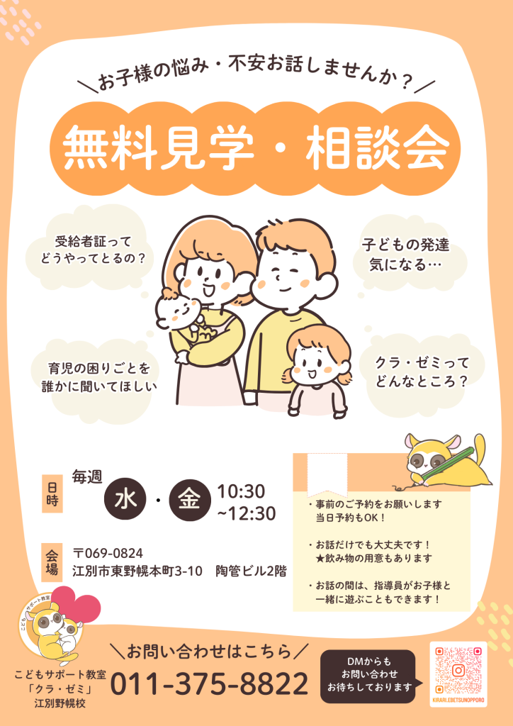 現在、クラ・ゼミ江別野幌校では、見学相談会・イベントの応募を受け付けております!🎉