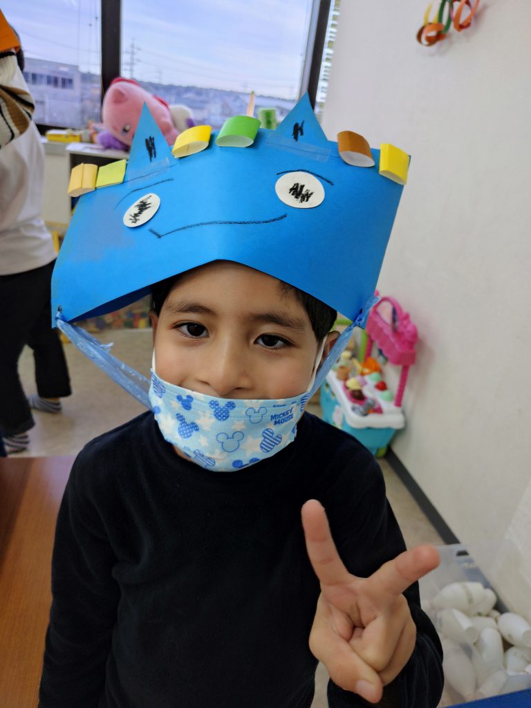 第二教室では節分に向けてお菓子を入れる箱と鬼のお面を作りました💕💕