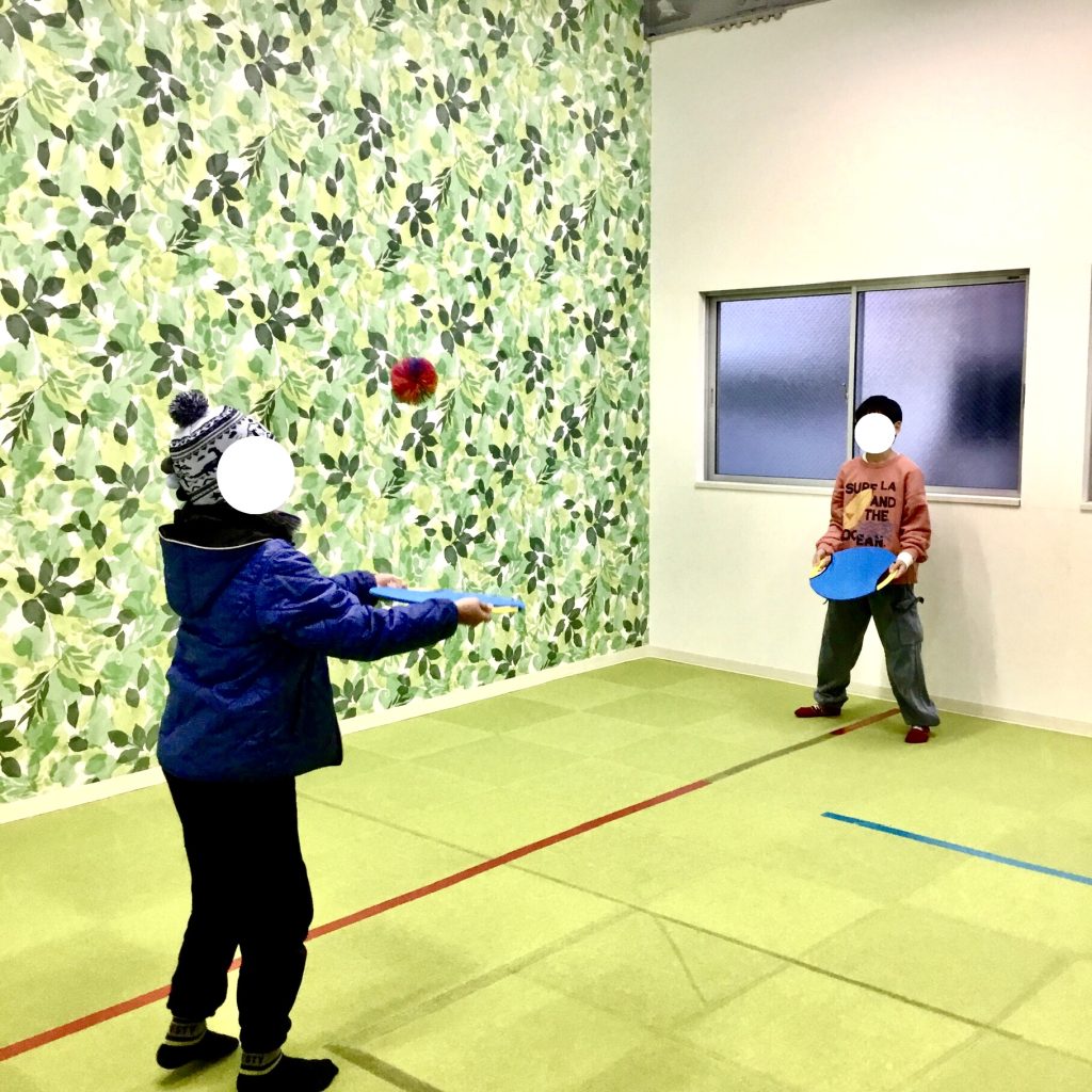 ゴムボールを弾ませて友達とラリーを行います🌟