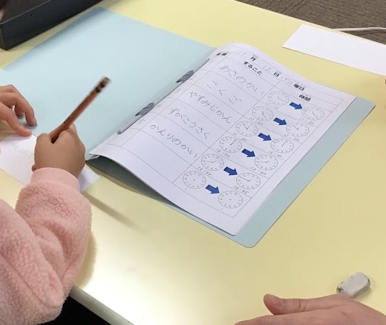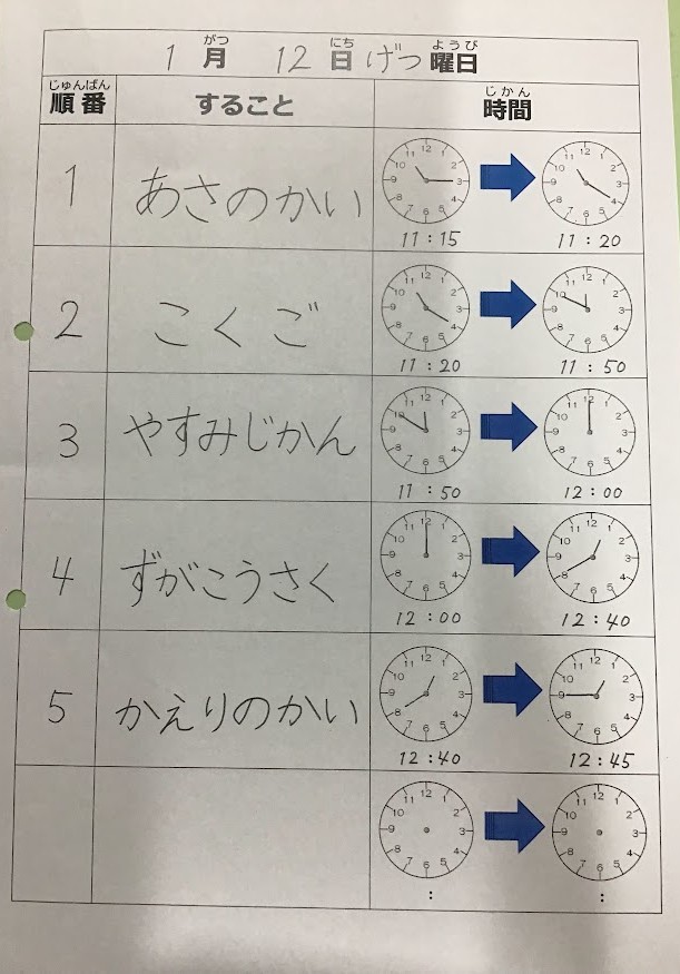 国語の時間では、学校のルールに関する○×クイズと動物に関するスリーヒントクイズを行いました。見本の文字を見ながら問題の答えを紙に書いてもらうと、一生懸命よく見て書く様子が見られました✍