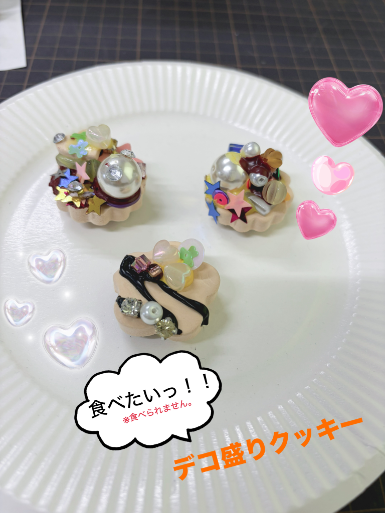クッキーは粘土を型抜きしたものにこちらもチョコソースをかけてデコレーションします。クッキーも可愛くておいしそうです💕