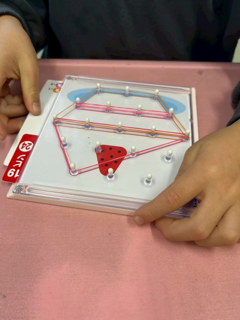 まずは輪ゴムを操作して形をつくっていく、【輪ゴムパターンボード】です♪