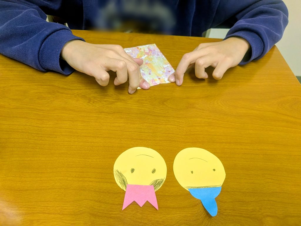 蛇腹折を始めてする子も多かったのですが、指先を一生懸命使ってお雛様とお内裏様の着物を折り上げていました😊