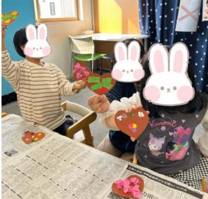 完成したかわいらしいチョコレートを見て「ママにプレゼントする!」と話し、嬉しそうに笑顔でお話してくれました😊