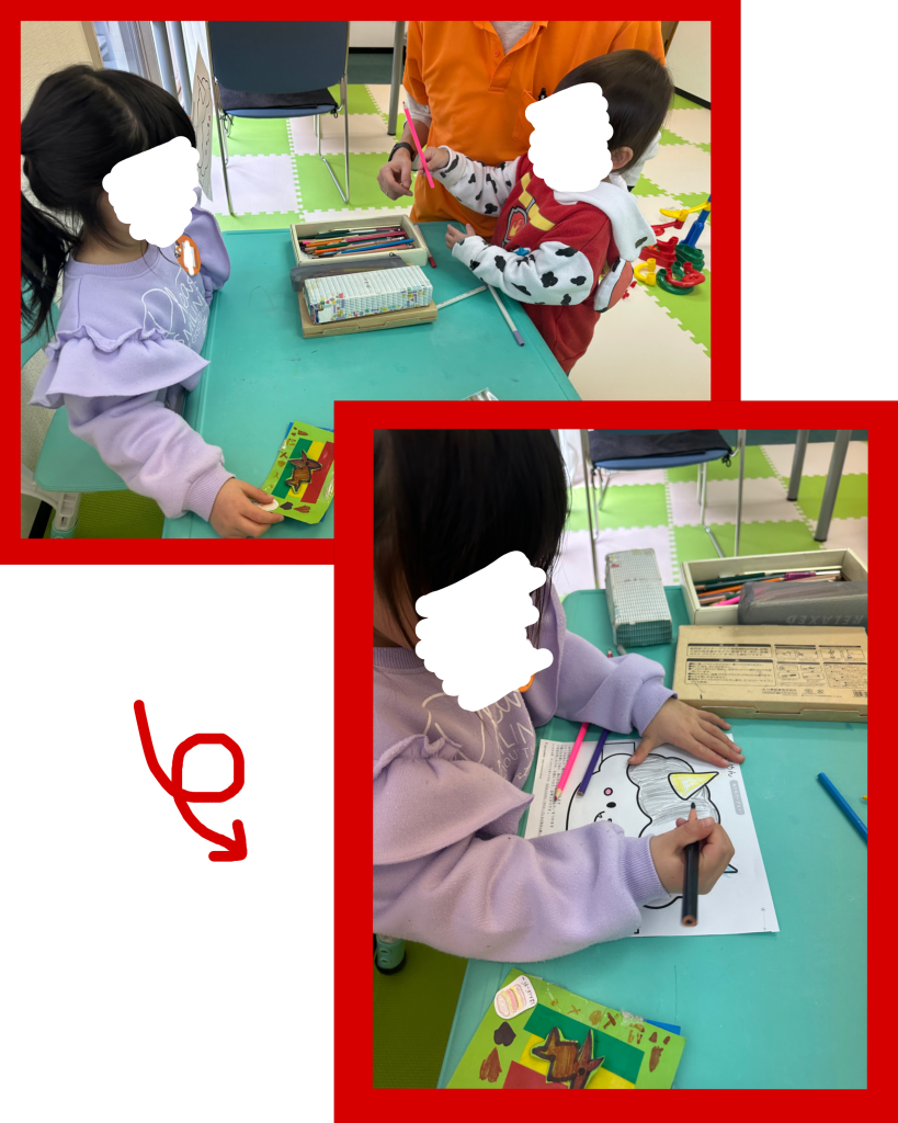 少し過ぎましたが、節分の前に鬼のお面作りをした様子です。