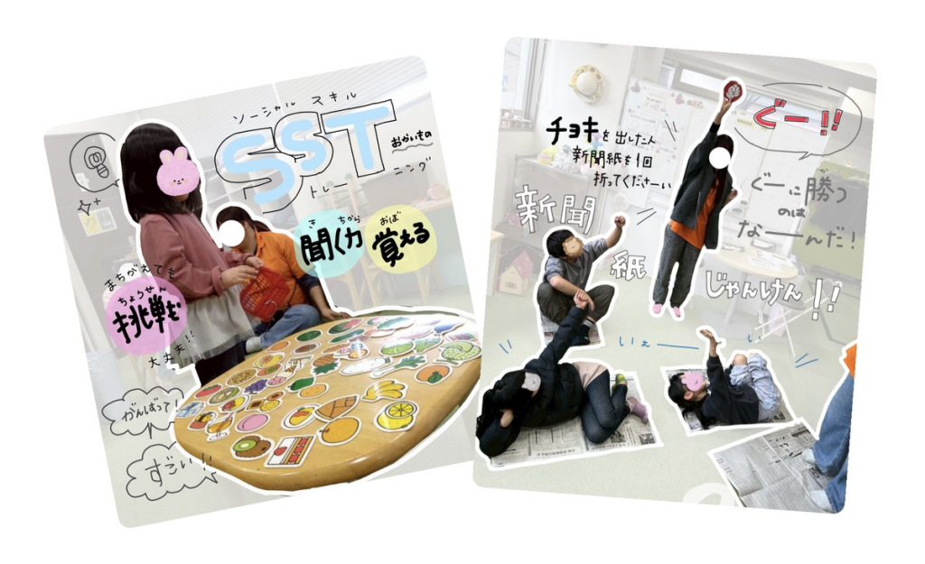 他には「 真似っこゲーム 」や「 お買い物SST 」「 新聞紙じゃんけん 」!