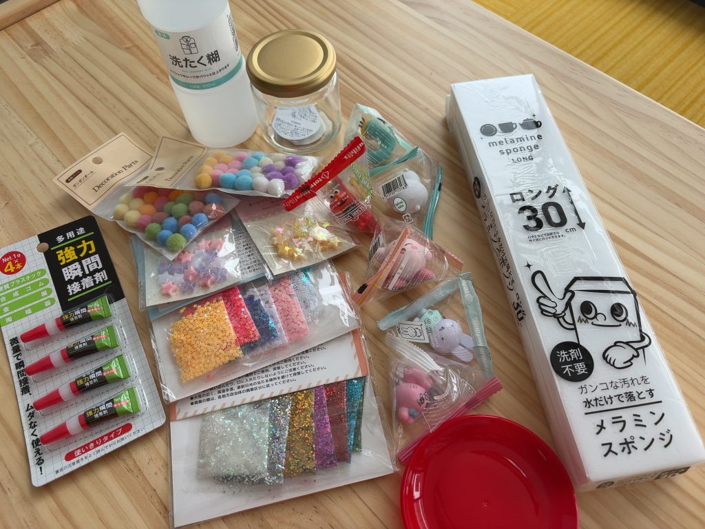 目の前に材料が運ばれてきて、さっそく好きな瓶やフィギュアなどを選んでいきます。