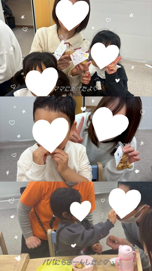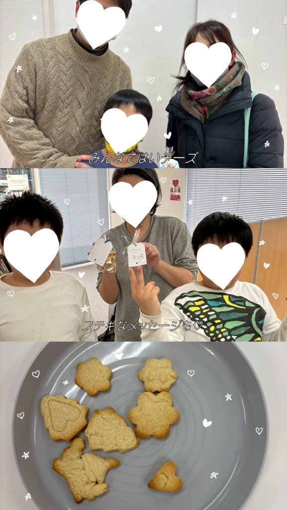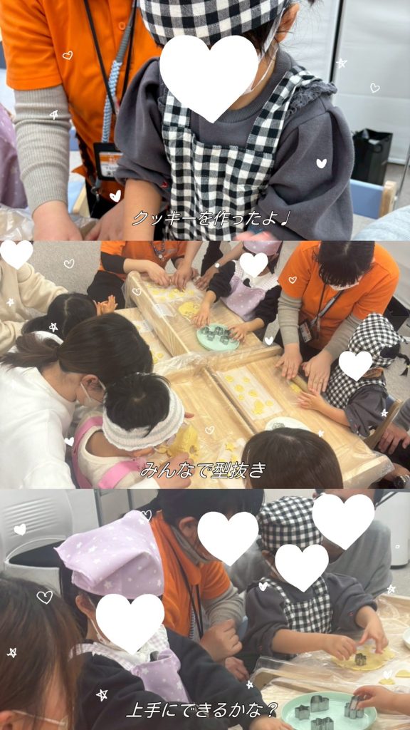 お父さんお母さんとも協力して上手に型抜きし、かわいいクッキーがたくさんできましたよ!