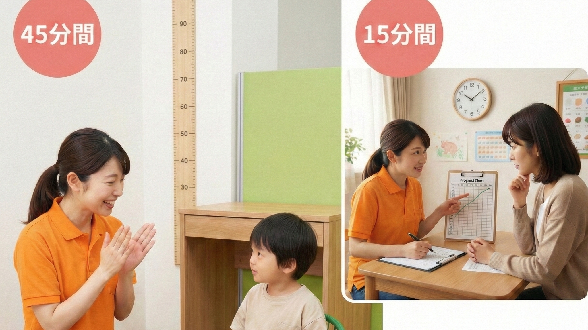 「45分の療育」+「15分のフィードバック」が基本スタイル
