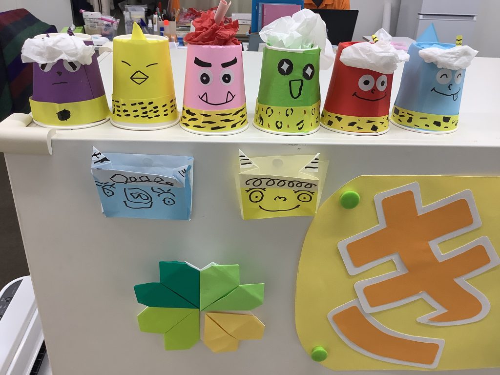 紙コップを使って可愛らしく鬼を作っていきました!👹
