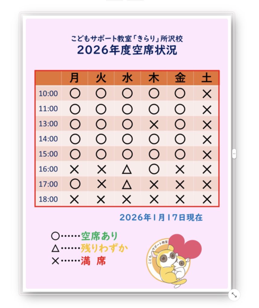最後に、所沢校の空席状況についてのお知らせを致します。