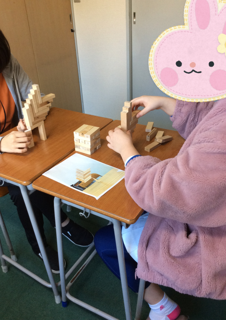 ジェンガで使用するブロックを活用して行います。