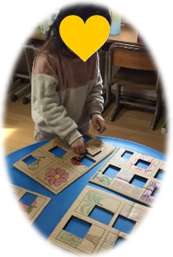 切り取られた絵の一部をはめ込み、絵を完成させました。