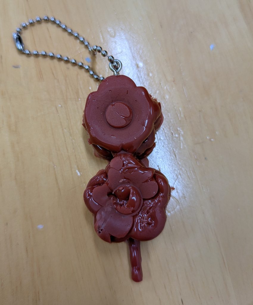 固まったものを型から取り外し、キーホルダーチェーンを取り付ければ