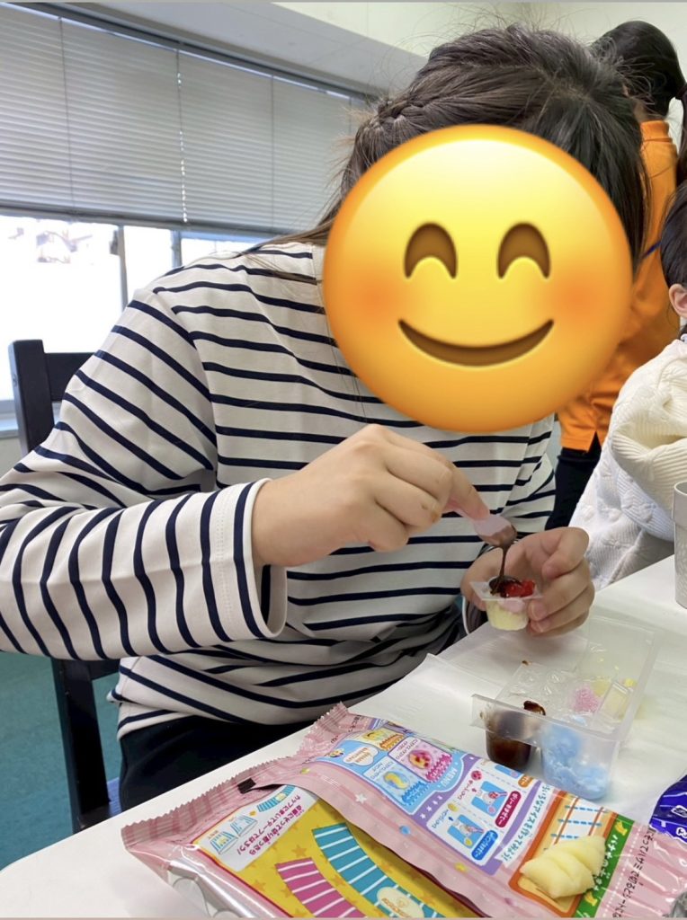 帰って来てからはみんなでお菓子を食べています。