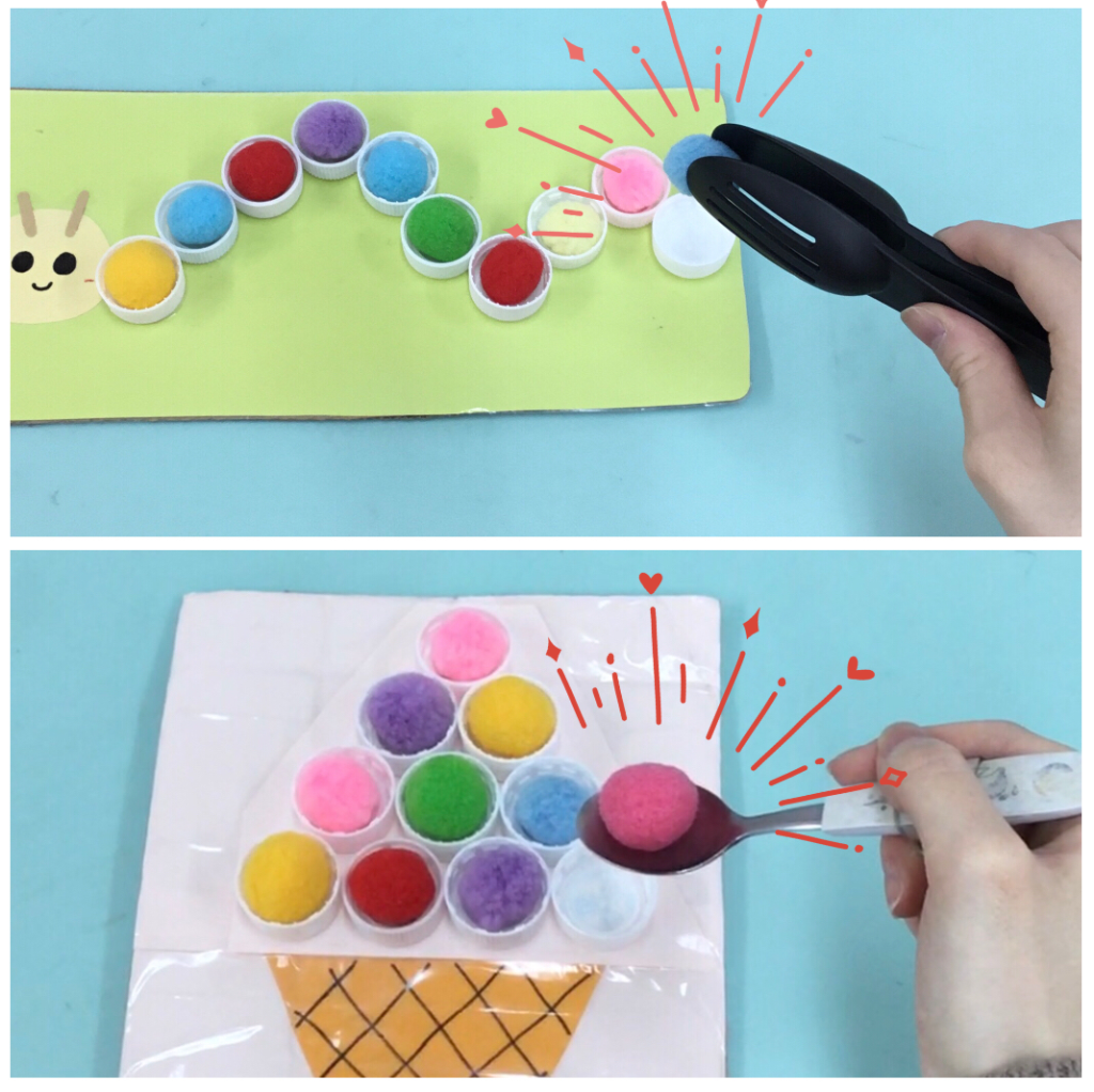 こちらは「フェルトボール入れ遊び」になります!🍦🐛