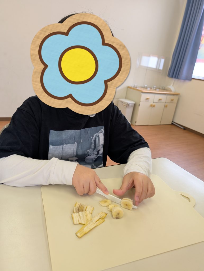 バナナを切ったりクリームを絞ったりして