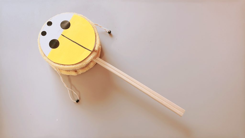 指導員が作った土台に毛糸を巻いたり、自分の好きな絵を貼ったり……